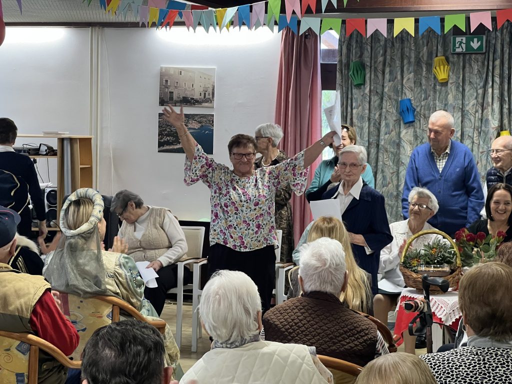 Ove godine, kroz obilježavanje Međunarodnog dana starijih osoba, htjeli smo naglasiti važnost međugeneracijske suradnje i solidarnosti: mlađe i starije osobe obogaćuju život i svakodnevicu jedni drugima, što je vidljivo i u našoj domskoj svakodnevici. Ove godine ovaj poseban dan obilježili smo zajedno s članovima Udruge umirovljenika grada Krka, Udruge umirovljenika Malinska Dubašnica, članovima Udruge knezova krčkih Frankopana, volonterima te s članovima obitelji naših stanara. Uživali smo u pjesmama koje je otpjevao naš domski pjevački zbor te u kratkom skeču naše dramske skupine. Dan starijih osoba proveli smo rekreativno na način da